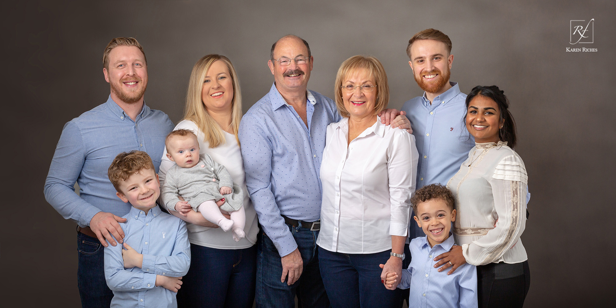 Published 14th January 2020 at 2000 × 1000 in 21 Red Frog Photography Studio family portrait of a family group taken at our studio in Leyland Lancashire