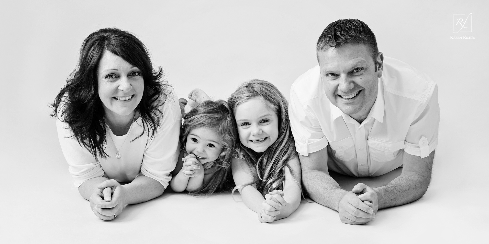 Published 14th January 2020 at 2000 × 1000 in 23 Red Frog Photography Studio portrait of a family with two cute little girls
